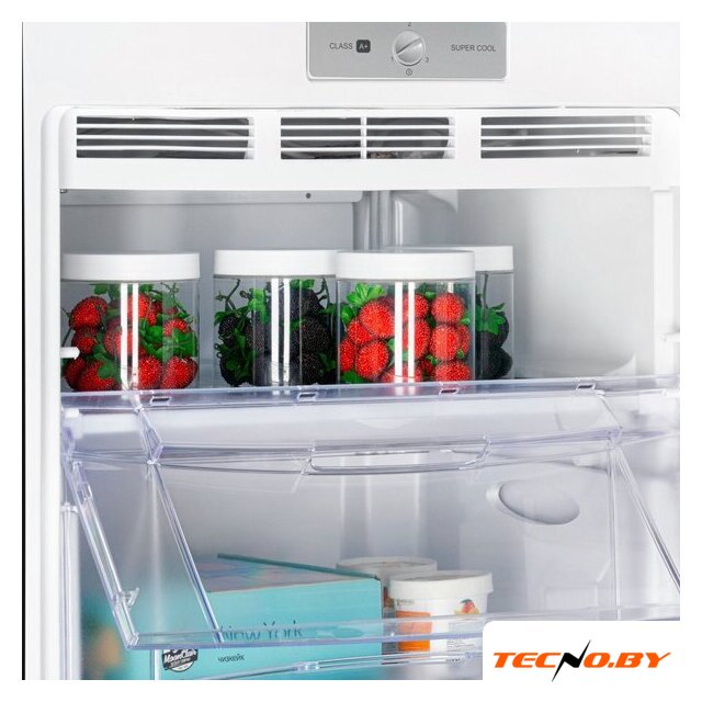 отдельностоящий, без No Frost, электронное управление, класс A+, полезный объём: 261 л (182 + 79 л), перенавешиваемые двери, лоток для яиц, 59.5x62.9x156.8 см, белый