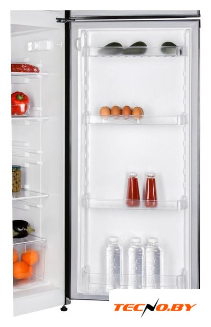 отдельностоящий, без No Frost, механическое управление, класс A+, полезный объём: 257 л (204 + 53 л), перенавешиваемые двери, лоток для яиц, 57.4x62.5x165.7 см, серебристый