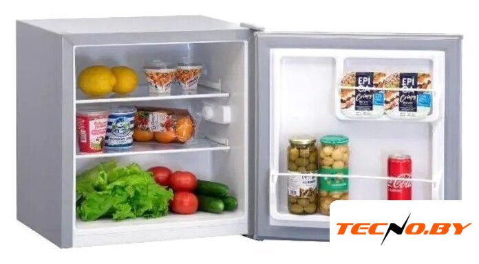 отдельностоящий, без No Frost, механическое управление, класс A+, полезный объём: 46 л, перенавешиваемые двери, лоток для яиц, 47x44.7x49.6 см, серебристый