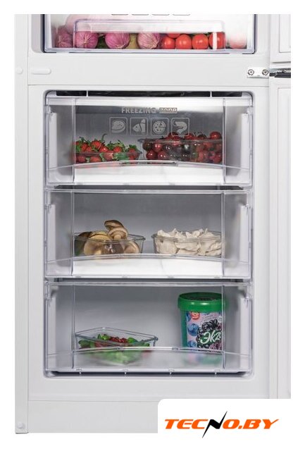 Общий полезный объем холодильника составляет 249 литров, из которых 169 литров занимает холодильная камера, а 80 литров отведено для морозильной камеры. Эти параметры позволяют хранить значительное количество продуктов, распределенных по трем стеклянным полкам и двум пластиковым дверным балконам. Для еще большего удобства предусмотрены ящики для хранения овощей и фруктов. 🍎
