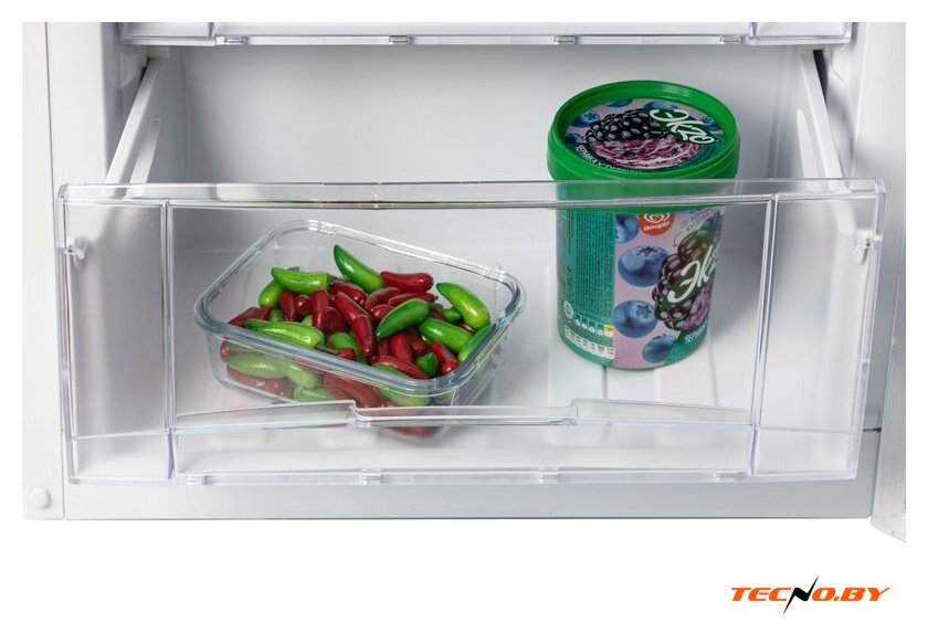 С четырьмя стеклянными полками и тремя дверными балконами из пластика, холодильная камера предлагает функциональность и легкость в размещении продуктов. 🥗 Для хранения овощей и фруктов предусмотрен отдельный ящик. Кроме того, в комплект входит удобный лоток для яиц. Однако функция регулировки влажности отсутствует.