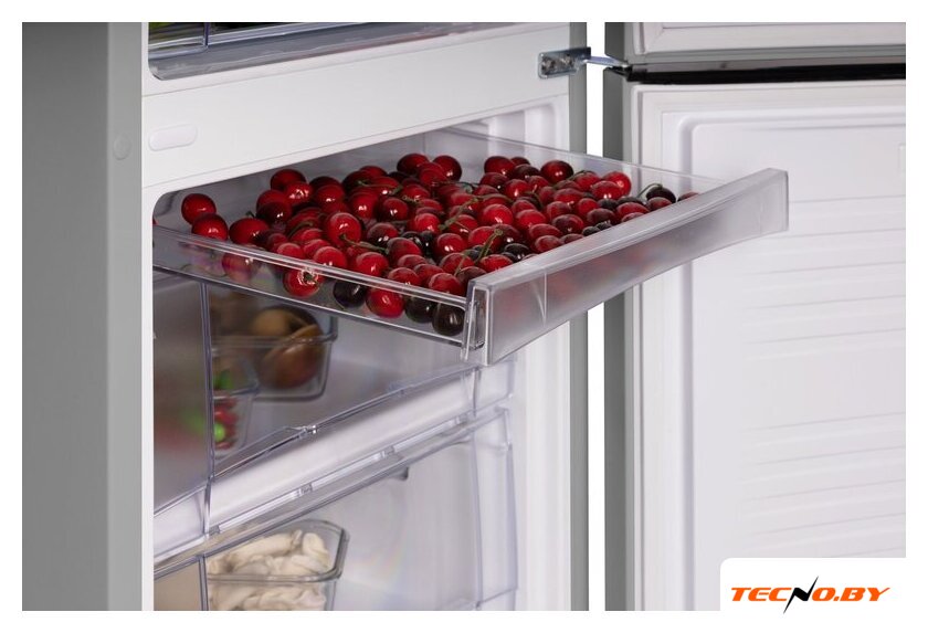 Холодильник Nordfrost располагает значительным общим объемом 310 литров, из которых уютную компанию свежих продуктов разместит холодильная камера с 204 литрами полезного объема. Четыре стеклянные полки и три дверных балкона удобно адаптируют внутреннее пространство под ваши нужды, сохраняя любимые продукты в идеальном порядке. Для свежести фруктов и овощей предусмотрен специальный ящик, а лоток для яиц обеспечит безопасное хранение.