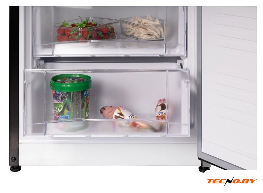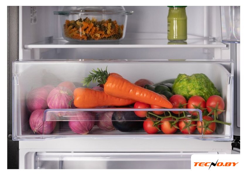 С общей вместимостью 343 литра, Nordfrost предлагает отличные возможности для хранения. Полезный объем холодильной камеры составляет 238 литров, что позволяет удобно разместить большое количество продуктов на 5 прочных стеклянных полках и 4 дверных балконах. В нижней части холодильника находится ящик для овощей и фруктов, а дополнительный лоток для яиц помогает рационально использовать внутреннее пространство камеры.