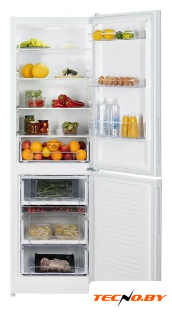 отдельностоящий, без No Frost, электронное управление, класс A+, полезный объём: 370 л (251 + 119 л), зона свежести, перенавешиваемые двери, полка для вина, лоток для яиц, 59.5x62.9x206.8 см, белый