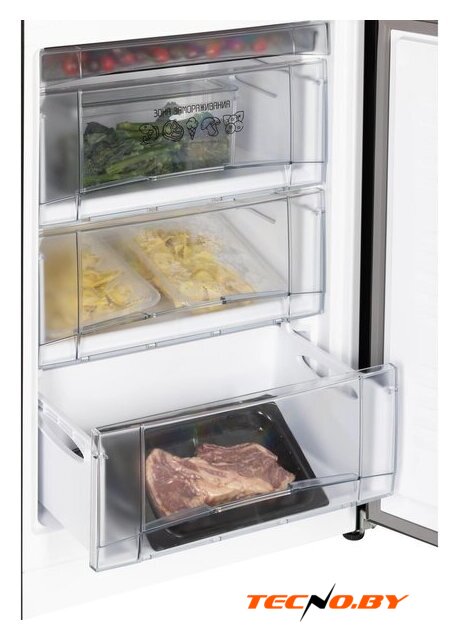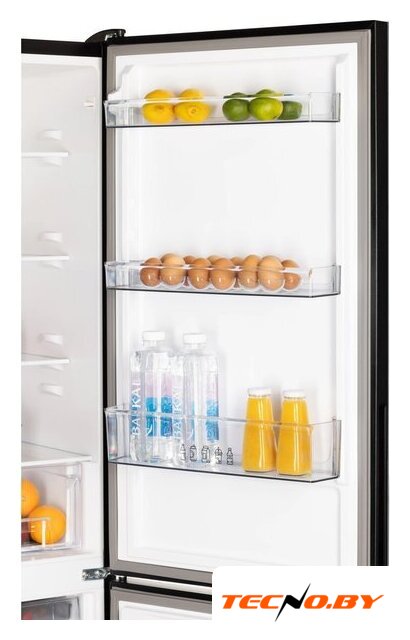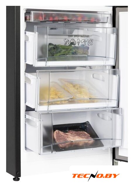 отдельностоящий, полный No Frost, электронное управление, класс A+, полезный объём: 302 л (223 + 79 л), инверторный компрессор, перенавешиваемые двери, лоток для яиц, 59.5x64.3x190.7 см, графит