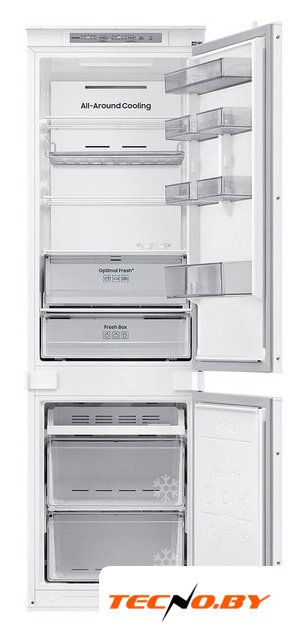 встраиваемый, скользящие направляющие, No Frost (морозильная камера), электронное управление, класс A++, полезный объём: 273 л (190 + 83 л), зона свежести, складная полка, лоток для яиц, 54.1x54.5x177 см, белый
