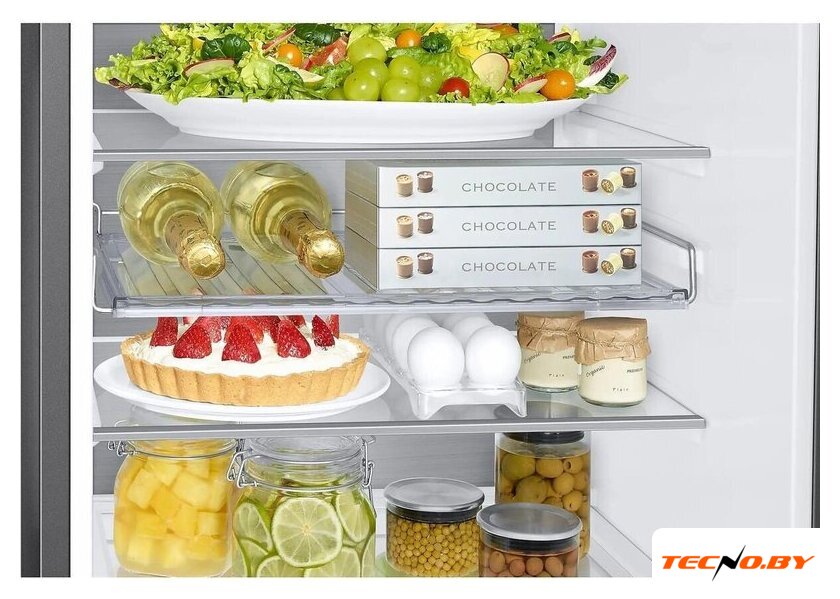 отдельностоящий, полный No Frost, электронное управление, класс A+, полезный объём: 466 л (283 + 183 л), инверторный компрессор, лоток для яиц, отделка: стекло, 91x60x183.6 см, белый