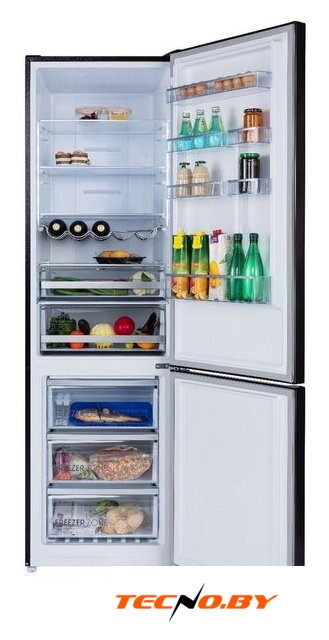 отдельностоящий, полный No Frost, электронное управление, класс A+, полезный объём: 322 л (239 + 83 л), инверторный компрессор, перенавешиваемые двери, нулевой зазор, складная полка, лоток для яиц, 60x62x198 см, темная сталь