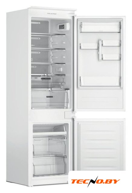 встраиваемый, No Frost (морозильная камера), электронное управление, класс A+, полезный объём: 281 л (225 + 56 л), перенавешиваемые двери, полка для вина, лоток для яиц, 54x54x193.7 см, белый