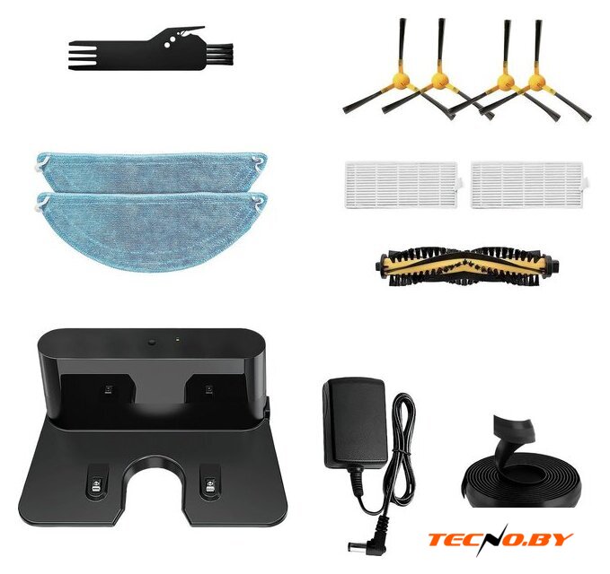 | Комплектация | ПылесосЩетка для чистки фильтра Тряпка для влажной уборки - 2 штЗарядная док-станция Контейнер для водыПульт ДУАккумуляторная батареяОсновная щеткаБоковая щетка - 4 штФильтр HEPA - 2 штМагнитная лента |