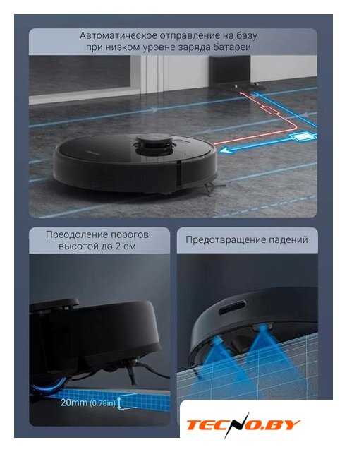 влажная уборка, фирменное приложение, мощность 75 Вт, сила всасывания 5000 Па, пылесборник 0.33 л, с турбощеткой, навигация: контактный бампер, лидар, датчики перепада высоты, лазерные датчики препятствий, план нескольких этажей