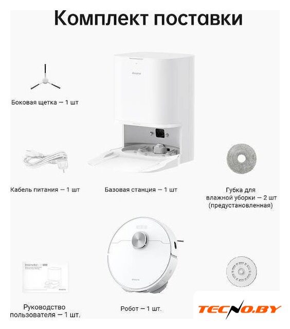 влажная уборка, фирменное приложение, сила всасывания 10000 Па, пылесборник 0.8 л, с турбощеткой, навигация: контактный бампер, лидар, датчики перепада высоты, лазерные датчики препятствий, база самоочистки