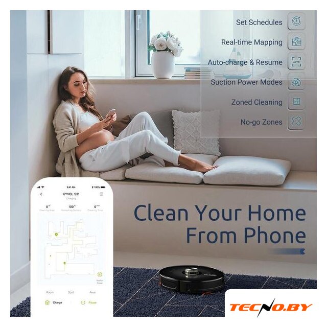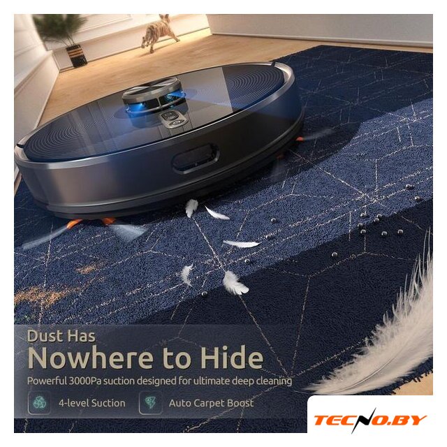 влажная уборка, фирменное приложение, сила всасывания 10000 Па, пылесборник 0.5 л, с турбощеткой, навигация: контактный бампер, лидар, датчики перепада высоты, лазерные датчики препятствий, база самоочистки