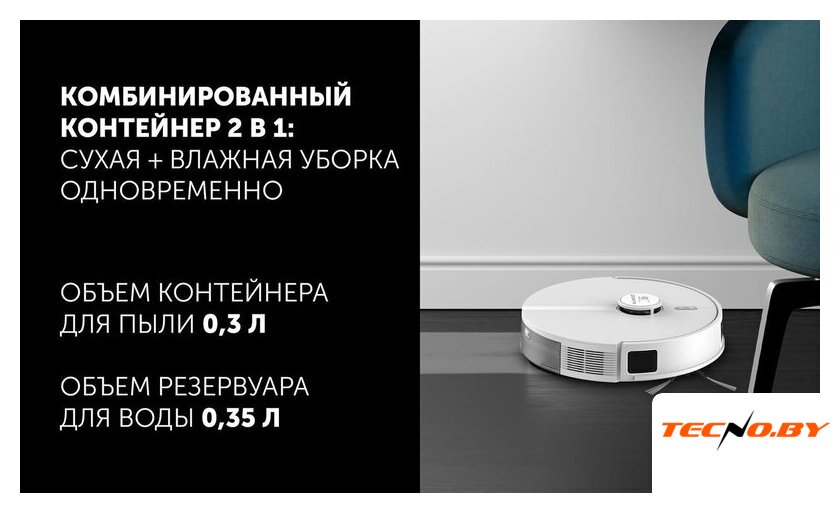 влажная уборка, сила всасывания 7000 Па, пылесборник 0.35 л, с турбощеткой, навигация: контактный бампер, лидар, камера TOF (3D), датчики перепада высоты, план нескольких этажей, база самоочистки