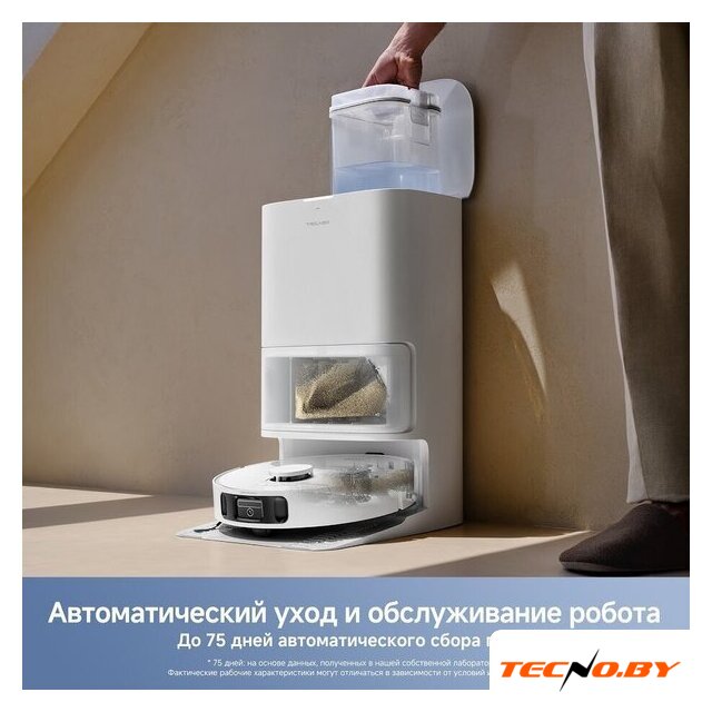 влажная уборка, фирменное приложение, сила всасывания 10000 Па, пылесборник 0.8 л, с турбощеткой, навигация: контактный бампер, лидар, датчики перепада высоты, лазерные датчики препятствий, база самоочистки
