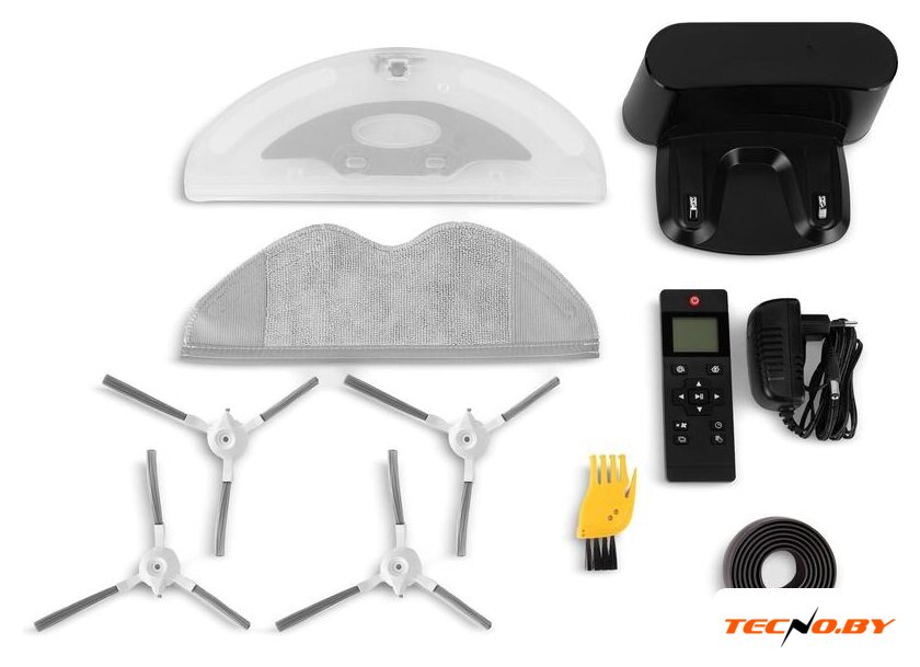 | Комплектация | Робот-пылесос – 1 шт.Зарядная станция – 1 шт.Сетевой адаптер – 1 шт.Боковые щётки – 2 шт.Пульт дистанционного управления – 1 шт.Насадка для влажной уборки пола – 1 шт.Тряпка из микрофибры – 2 шт.Магнитная лента – 1 шт.Щёточка для очистки – 1 шт.Инструкция по использованиюпрограммы TUYA SMART APP – 1 шт.Гарантийный талон – 1шт.Инструкция – 1 шт. |