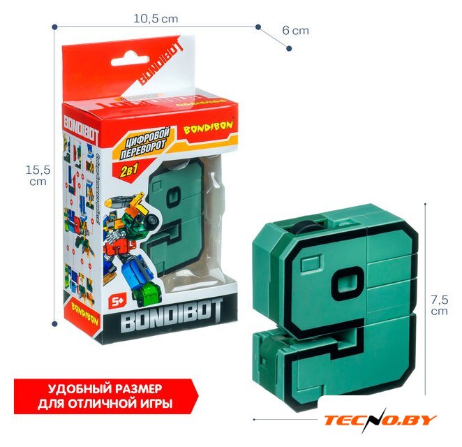 | Комплектация | Трансформер 2в1 BONDIBOT Bondibon BOX 10,5×6×15,5 см, цифра"9", арт. YB188-35E. |