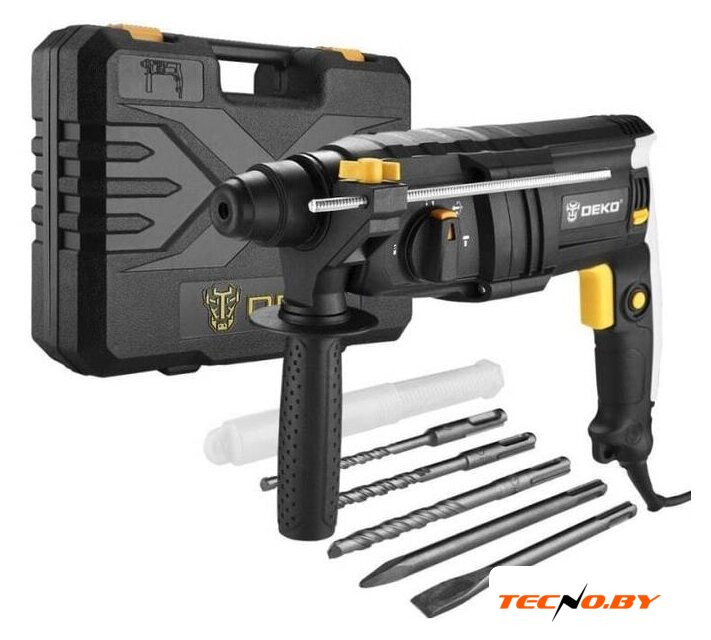 Комплект поставки | - Перфоратор;- Буры - 3 шт;- Долото - 2 шт;- Ограничитель глубины;- Инструкция;- Кейс. |