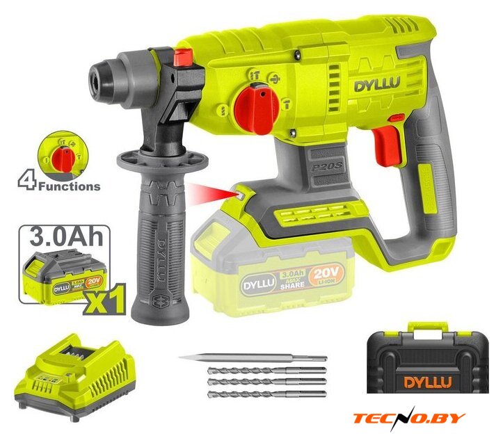 Комплект поставки | - Перфоратор - 1 шт.- Аккумулятор DTLBP530 3,0 Ач - 1 шт.- Зарядное устройство DTFCP518 - 1 шт.- Дополнительная рукоятка - 1 шт.- Буры 6, 8,10 мм. - 3 шт.- Долото - 1 шт. |