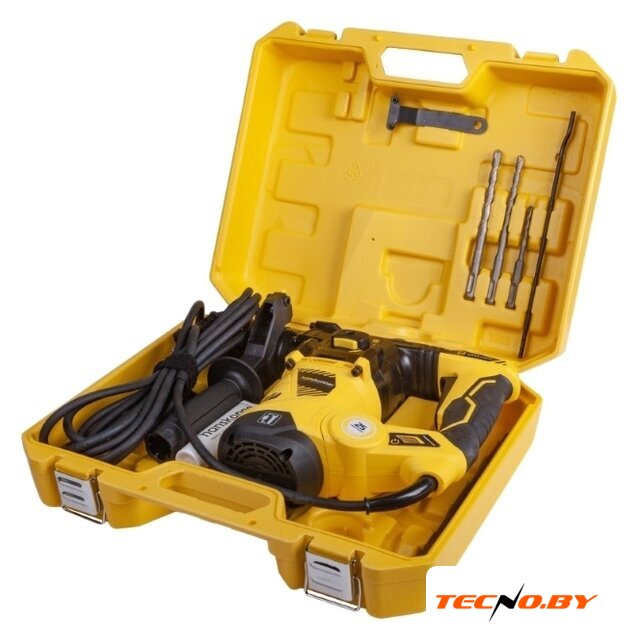 Комплект поставки | 1. Зубило - 1 шт2. Смазка для хвостовиков буров - 1 шт3. Пылезащитный колпачок – 1 шт4. Буры SDS+ 6/8/10 мм - 3 шт5. Дополнительная рукоятка (установлена) - 1 шт6. Ключ - 1 шт7. Ограничитель глубины – 1 шт |