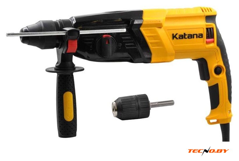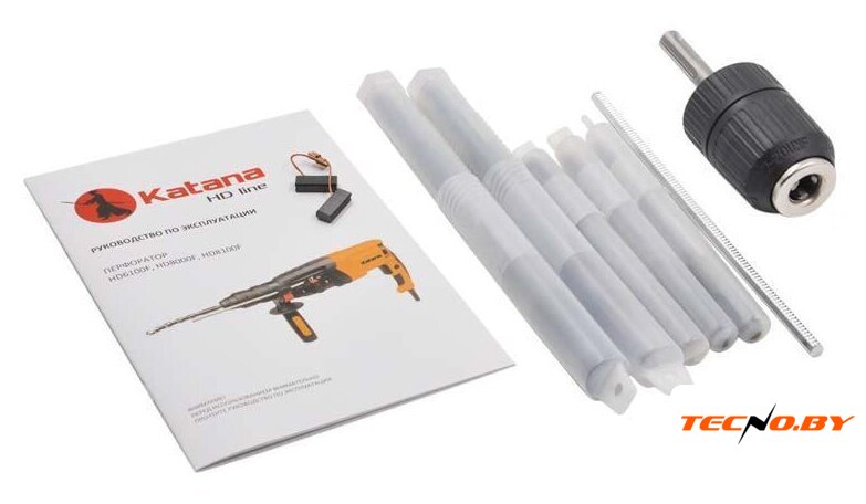 Комплект поставки | - Дополнительная рукоятка- Быстрозажимной патрон- Переходник SDS+ для быстрозажимного патрона- 3 сверла: 8х150, 10х150, 12х150 мм- 2 зубила: пиковое 250 мм и плоское 14х250мм- Угольные щетки (комплект) – 1 шт- Ограничитель глубины – 1 шт- Кейс пластиковый – 1 шт |