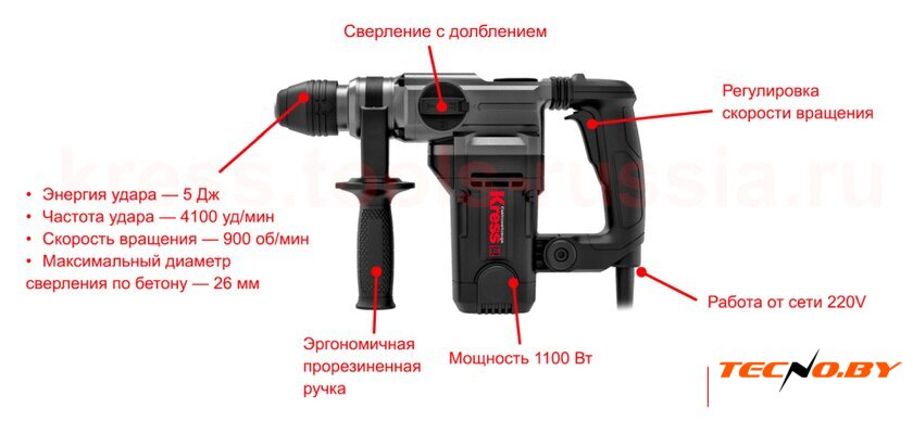 1500 Вт, питание: сеть, 5300 ударов/мин, энергия удара: 6.5 Дж, 4500 г