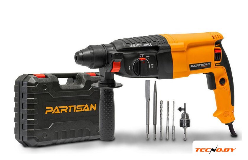 Комплект поставки | Перфоратор-1 шт.Дополнительная рукоятка-1 шт.Комплект оснастки по бетону (3 сверла: 6x150,8x150,10x150 мм. 2 зубила: пиковое 250 мм и плоское 20x250мм (13*BF920).Ограничитель глубины сверления.Дополнительный ключевой зажимной патрон + ключ.Угольные щетки.Кейс для хранения.Инструкция по эксплуатации, Гарантийный талон. |