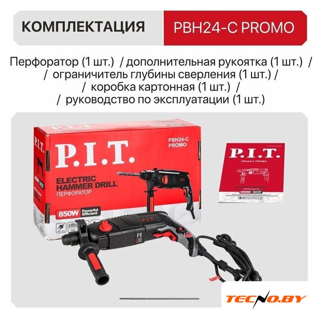 Комплект поставки | - Перфоратор, - ограничитель глубины сверления, - дополнительная рукоятка, - коробка, - руководство по эксплуатации. |