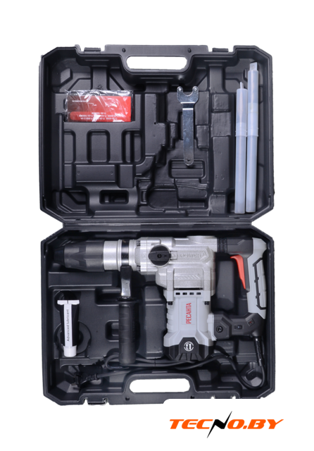 Комплект поставки | - Перфоратор;- Боковая рукоятка;- Бур;- Долото;- Смазка ударного механизма;- Ключ для пластиковой заглушки;- Паспорт;- Кейс пластмассовый. |