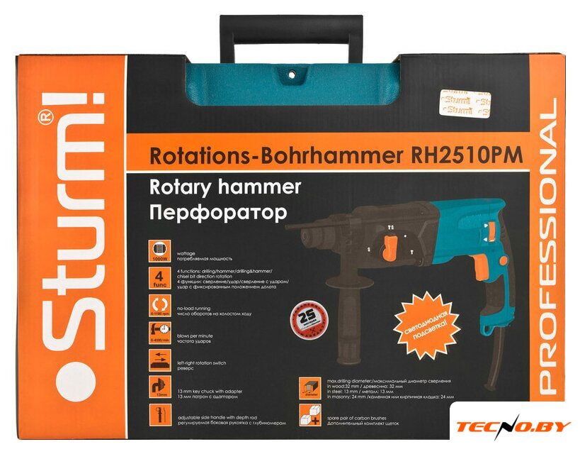 1050 Вт, питание: сеть, 3800 ударов/мин, энергия удара: 4.5 Дж