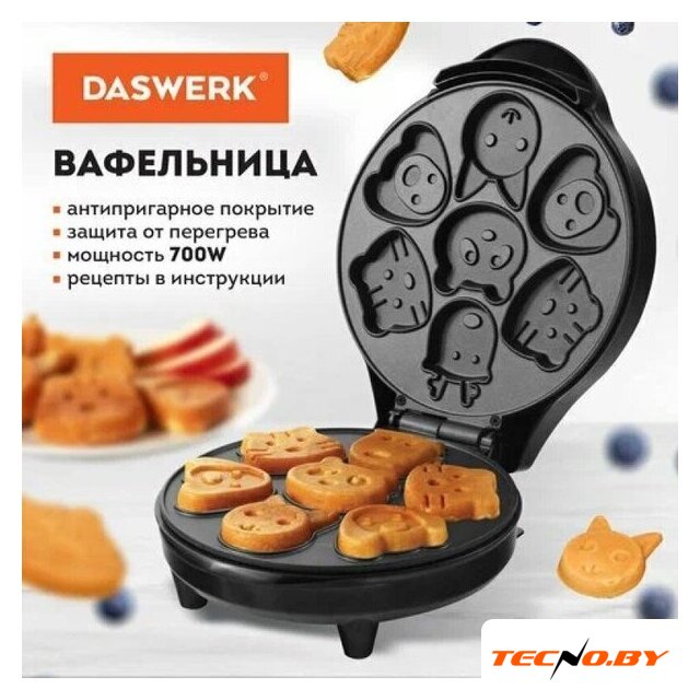 вафельница, 600 Вт, поверхность: вафельница, съемные плитки, вид выпечки: венские (бельгийские) вафли, черный
