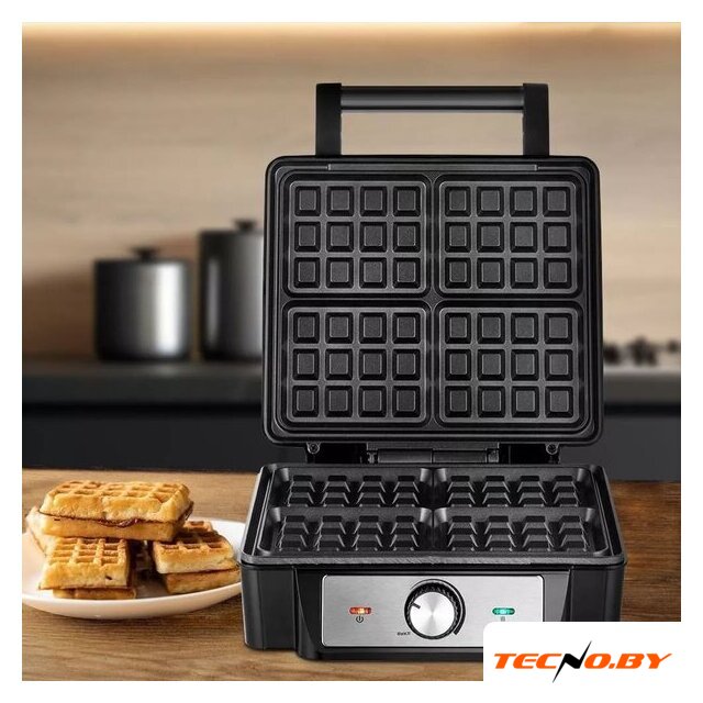 вафельница, 1000 Вт, поверхность: вафельница, вид выпечки: венские (бельгийские) вафли, черный