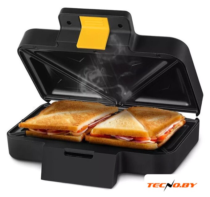 сэндвичница, 750 Вт, поверхность: форма для 2 ломтиков хлеба, черный