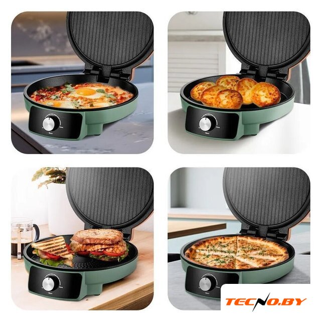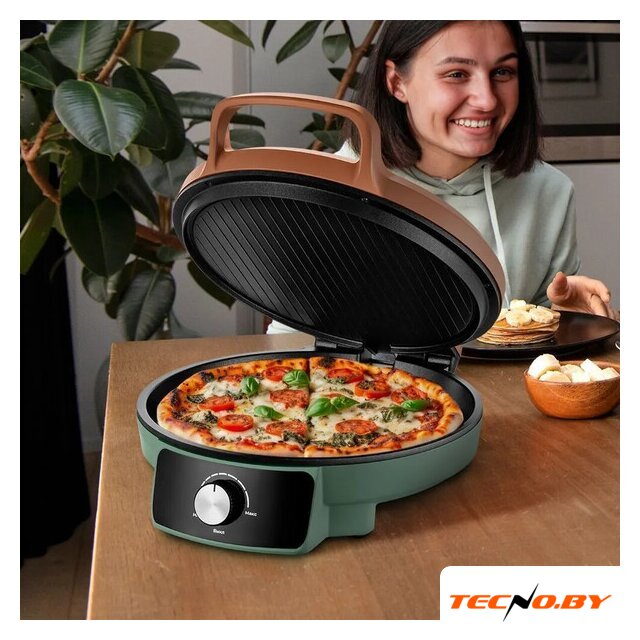 пиццамейкер, 1400 Вт, поверхность: гриль-пластина/сковорода, бирюзовый/черный