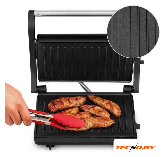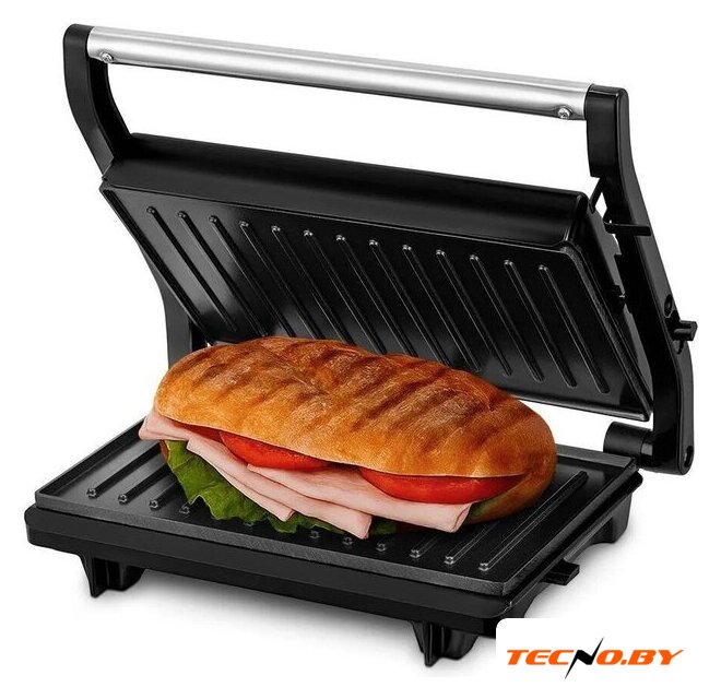 бутербродница, 750 Вт, поверхность: гриль-пластина, серый