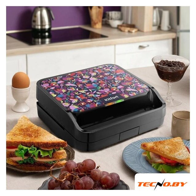 бутербродница, 750 Вт, поверхность: гриль-пластина, серый