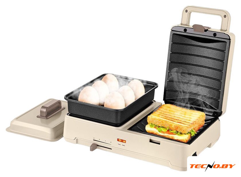 многофункциональная сэндвичница, 700 Вт, поверхность: гриль-пластина/форма для 2 ломтиков хлеба/вафельница, съемные плитки, вид выпечки: венские (бельгийские) вафли/гриль/сэндвич, черный