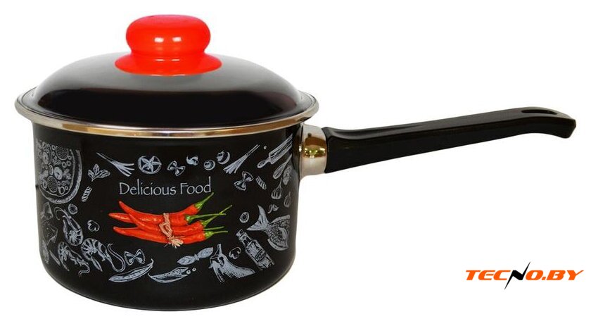 кастрюля с длинной ручкой, нержавеющая сталь, покрытие эмаль, крышка стальная