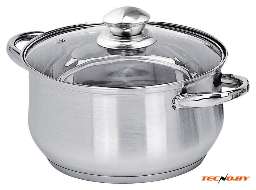 кастрюля, 2.6 л (20 см), нержавеющая сталь, покрытие отсутствует, крышка стеклянная
