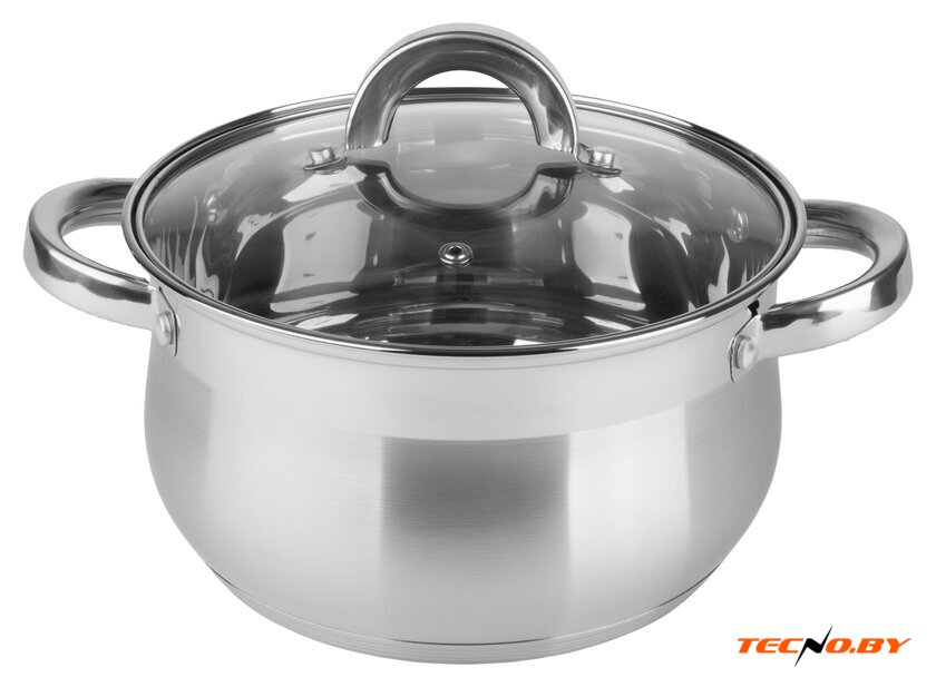 кастрюля, 2.1 л (16 см), нержавеющая сталь, покрытие отсутствует, крышка стеклянная