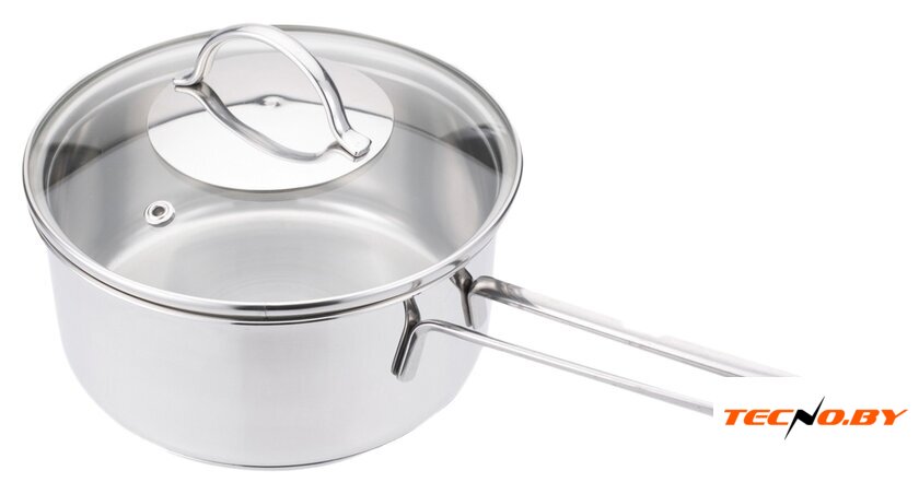 кастрюля с длинной ручкой, 1.9 л (16 см), нержавеющая сталь, покрытие отсутствует, крышка стеклянная