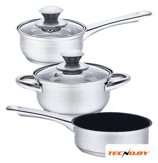 набор кастрюль, нержавеющая сталь, покрытие отсутствует, крышка стеклянная