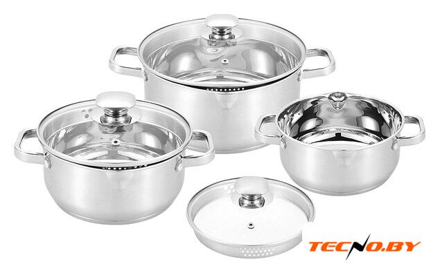 набор кастрюль, нержавеющая сталь, покрытие отсутствует, крышка стеклянная