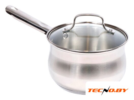 кастрюля с длинной ручкой, 0.75 л (12 см), нержавеющая сталь, покрытие отсутствует, крышка стеклянная