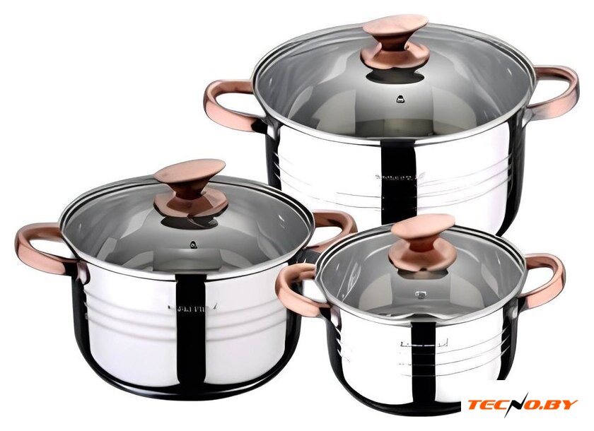 набор кастрюль, нержавеющая сталь, покрытие отсутствует, крышка стеклянная