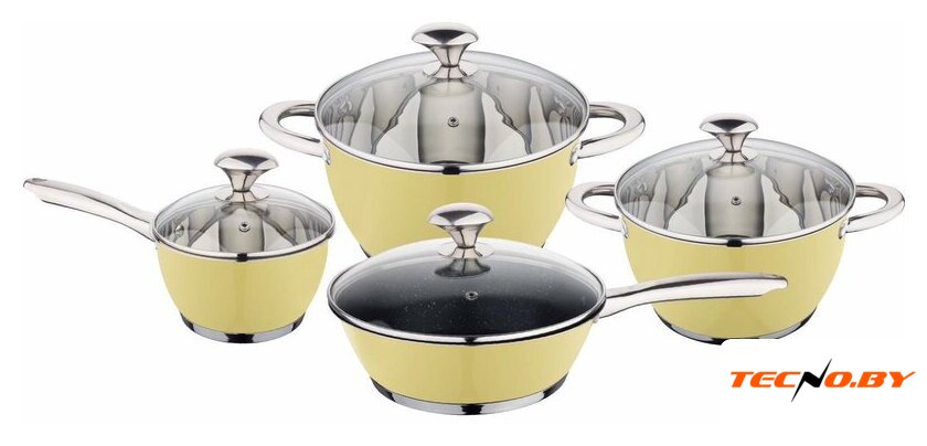 набор кастрюль, нержавеющая сталь, покрытие отсутствует, крышка стеклянная