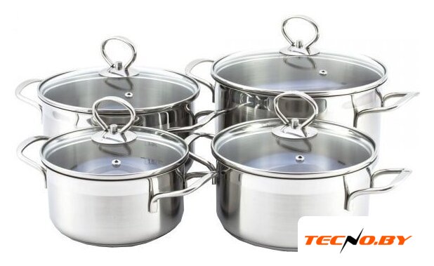 набор кастрюль, нержавеющая сталь, покрытие отсутствует, крышка стеклянная
