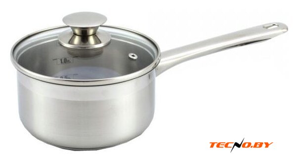 кастрюля с длинной ручкой, 1 л (14 см), нержавеющая сталь, покрытие отсутствует, крышка стеклянная