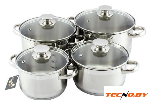 набор кастрюль, нержавеющая сталь, покрытие отсутствует, крышка стеклянная