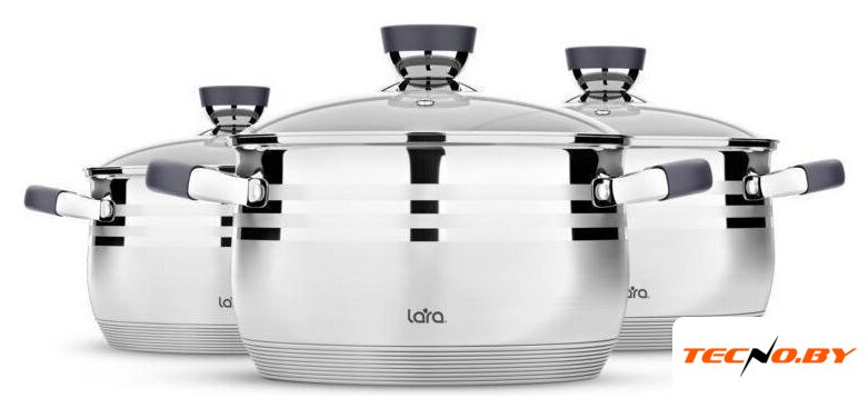 | Состав набора | Кастрюли: LR02-470 2.9л, LR02-472 3.9л, LR02-474 6.5л |